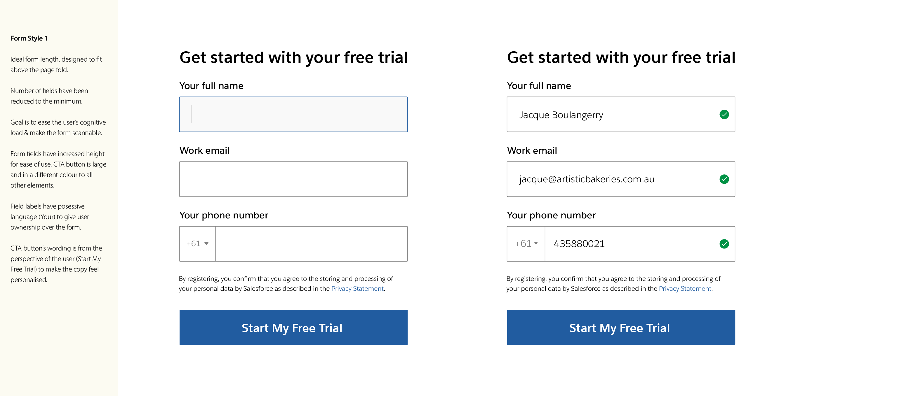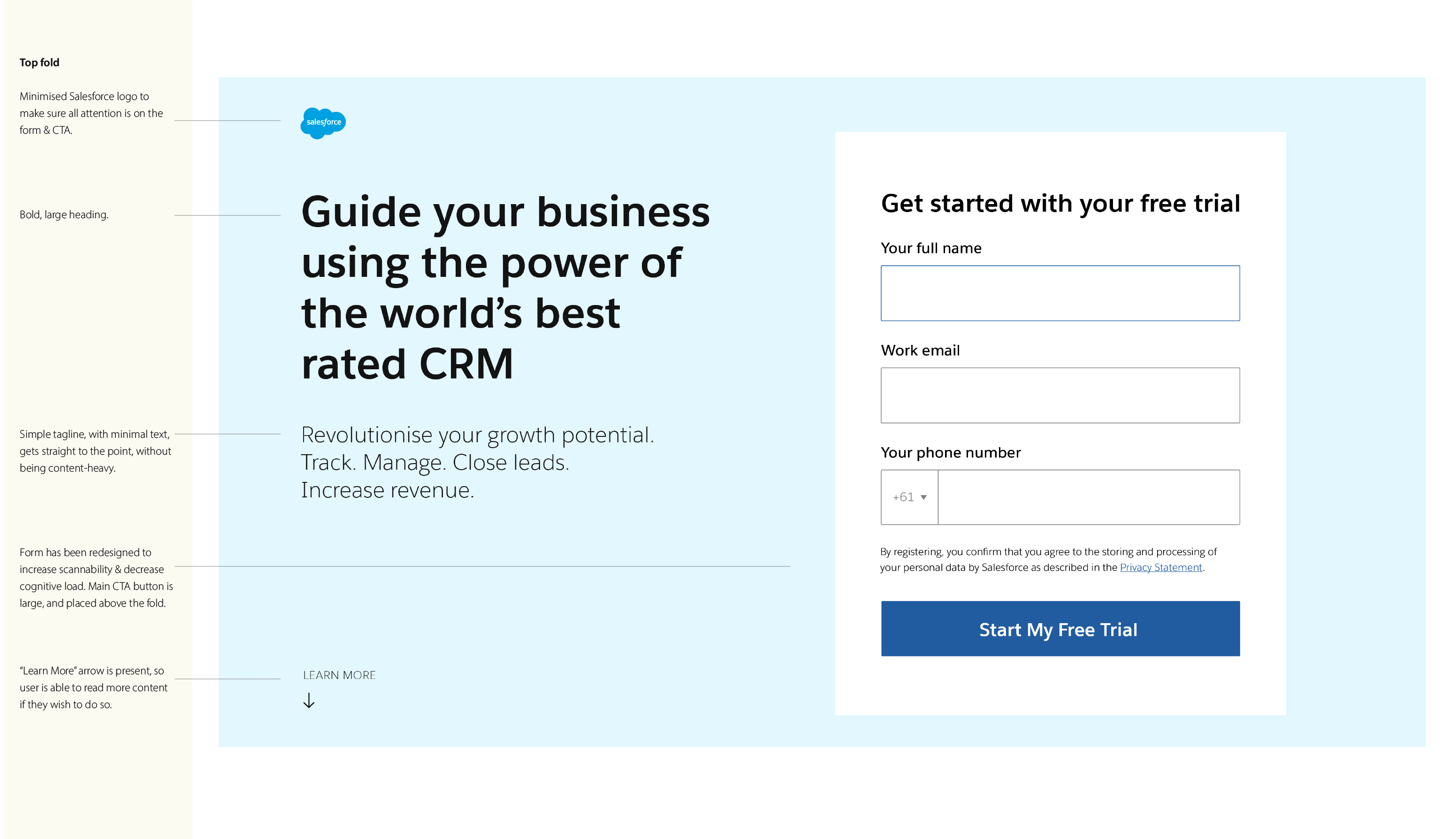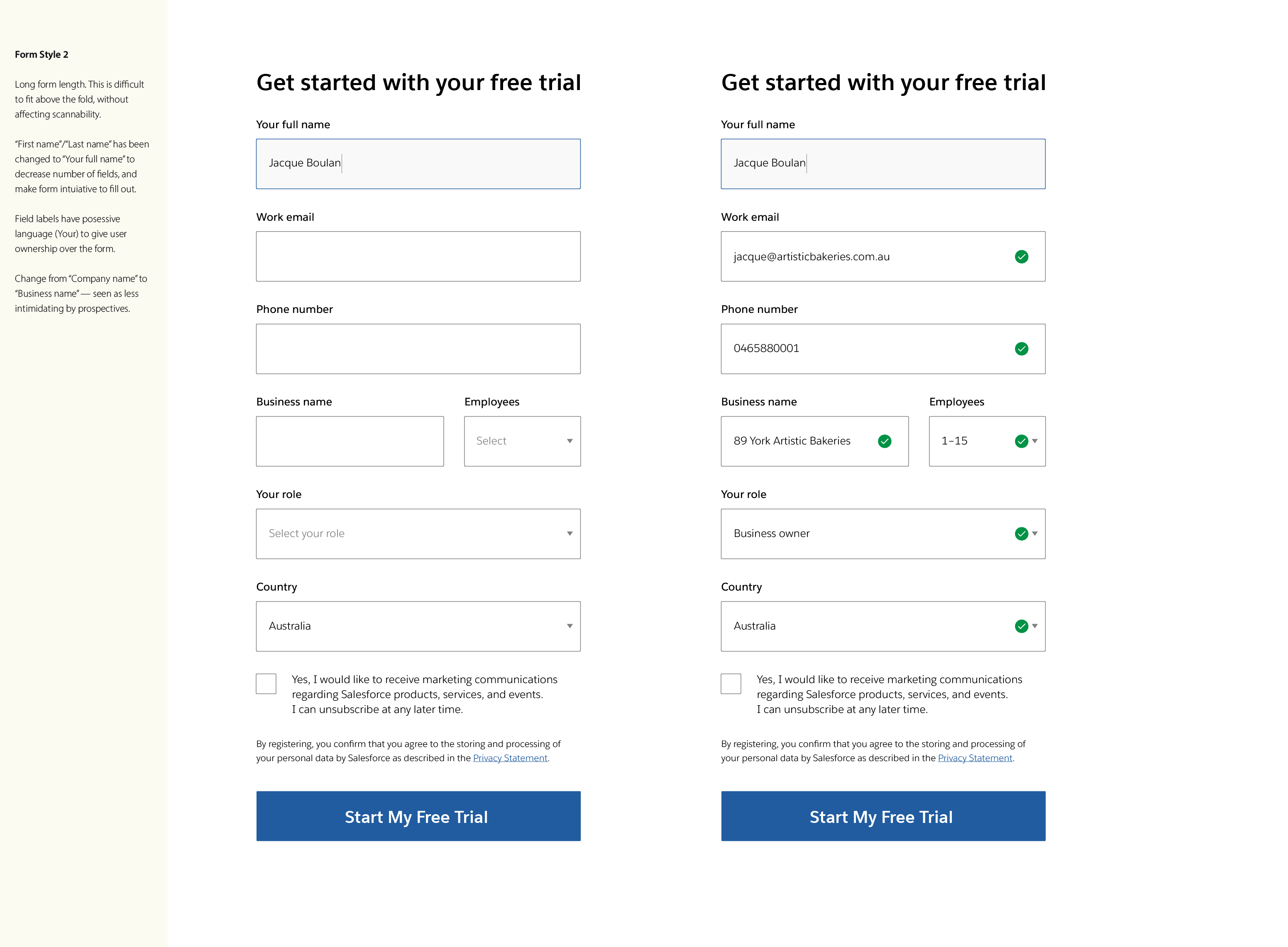 I wanted to redesign the form fields using Salesforce's own research insights, as well as following best practices defined conversion optimisation practitioners: